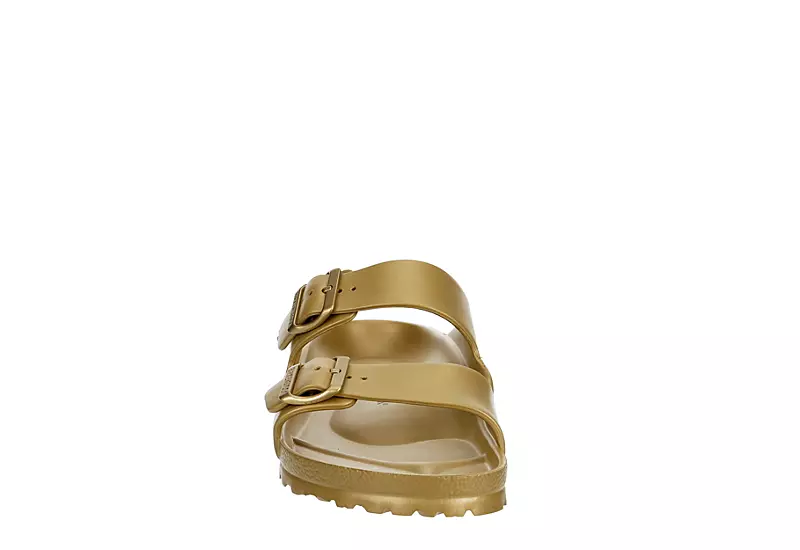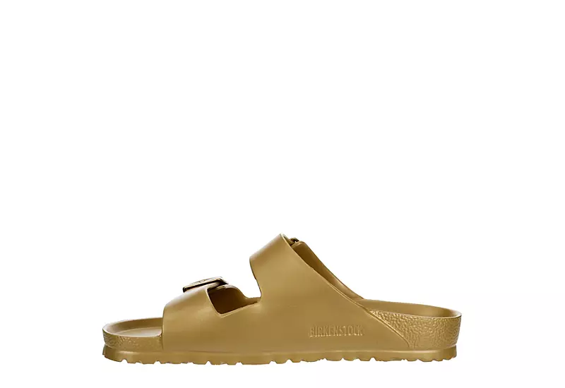 A true pioneer of laid-back comfort, the Birkenstock Arizona Essentials men’s slide sandal crafted from molded EVA features the original footbed with pronounced arch support, a roomy toe box, and a deep heel cup. Two trendy wide straps with buckles provide an adjustable fit.