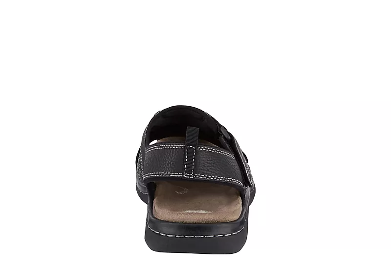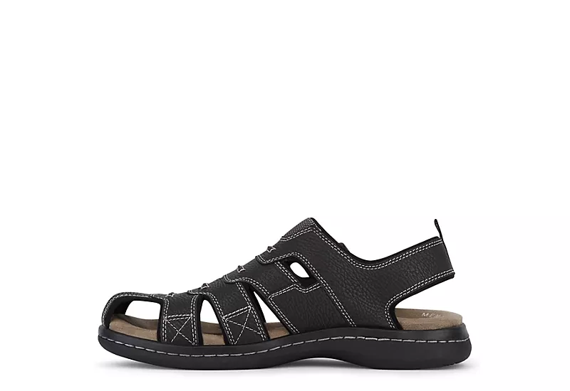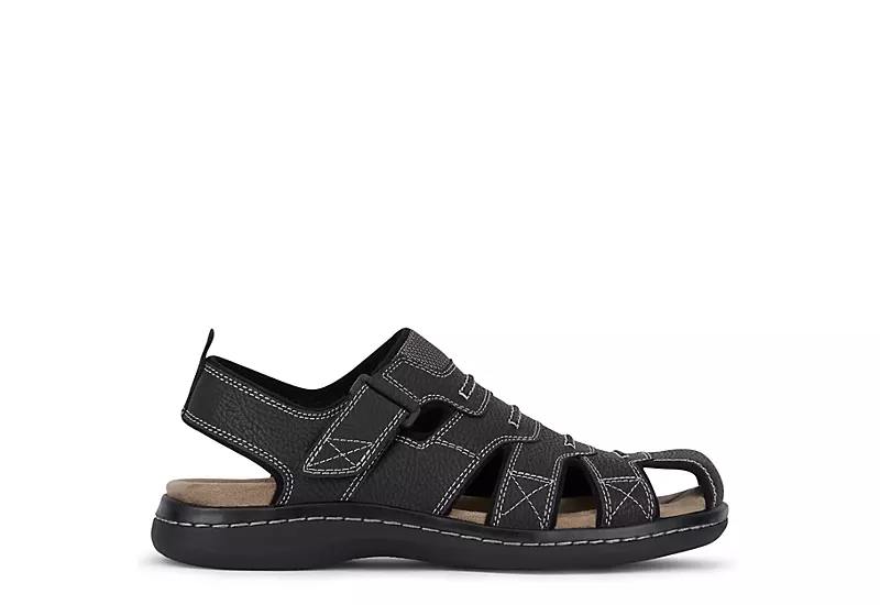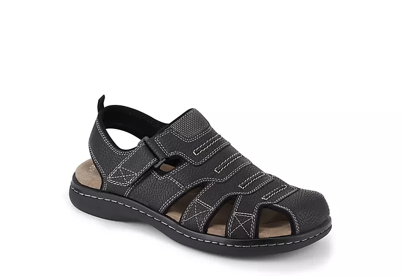 Bask in the casual, laid-back feel of the Searose men’s outdoor sandal from Dockers. With a distressed faux leather upper featuring a hook-and-loop strap for a secure fit, this fisherman-style sandal is perfect for running errands or walking. A Memory Foam insole with a Fusion Footbed cushions every step, while the rubber outsole provides a durable grip on any surface.