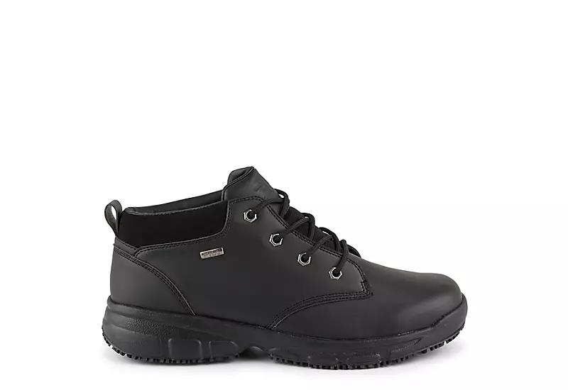 Flip your workday on its head in the Memory Mike Mid SR men’s work shoe from FILA. With a leather & faux leather upper featuring a rear pull tab for easy entry, this lace-up hybrid combines a sneaker’s comfort with the style of a work boot. The Memory Foam footbed cushions every step while the outsole offers ASTM-standard oil and slip resistance protection.