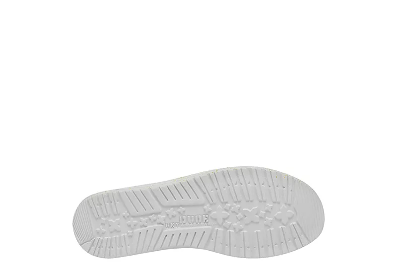 Relax into your passion with the HEYDUDE Wally Slub Canvas men’s slip-on sneaker. With a vintage-looking canvas upper featuring a cushioned ankle collar and Flex & Fold technology, this sneaker also has elastic laces for a secure fit. The removable Memory Foam insole and leather-lining comforts your foot, while the ultralight outsole sets you free to explore unfettered.